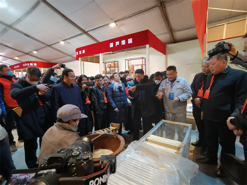 王曉峰等嘉賓觀摩空(kōng)心貢面制(zhì)作(zuò)流程