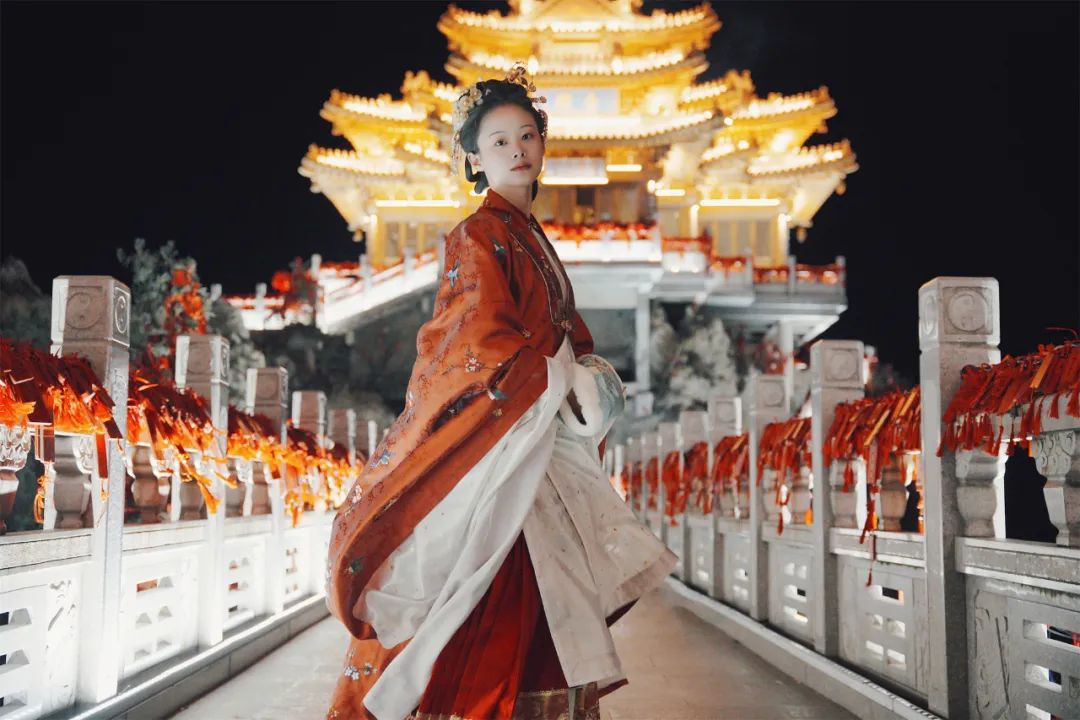 當漢服遇上(shàng)夜景,竟也(yě)如(rú)此驚豔,古風(fēng)古韻的(de→)場(chǎng)景,讓人(rén)瞬間(jiān)穿越。