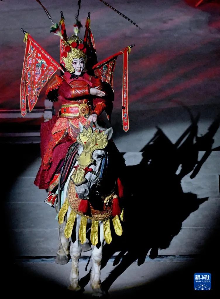 演員(yuán)在開(kāi)封清明(míng)上(shàng)河(hé)園景區(qū)內(nèi)進行(xíng)實景演出(2月(yuè)14₩日(rì)攝)。