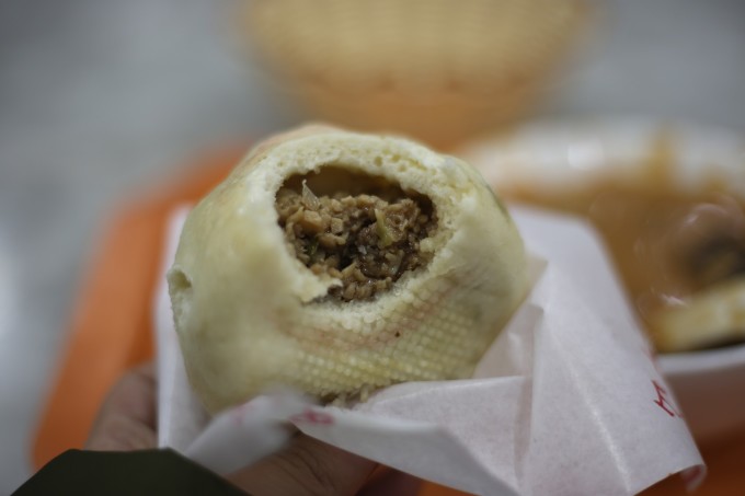 牛肉包子(zǐ)。皮薄肉多(duō),不(bù)是(shì)假誇,是(shì)真實的(de)肉多(duō),且多(duō)半是(shì)瘦γ肉,相(xiàng)對(duì)普通(tōng)包子(zǐ),味道(dào)偏淡,但(dàn)也(yě)很(hěn)好(hǎo)吃(chī)。2元1個(gè)。